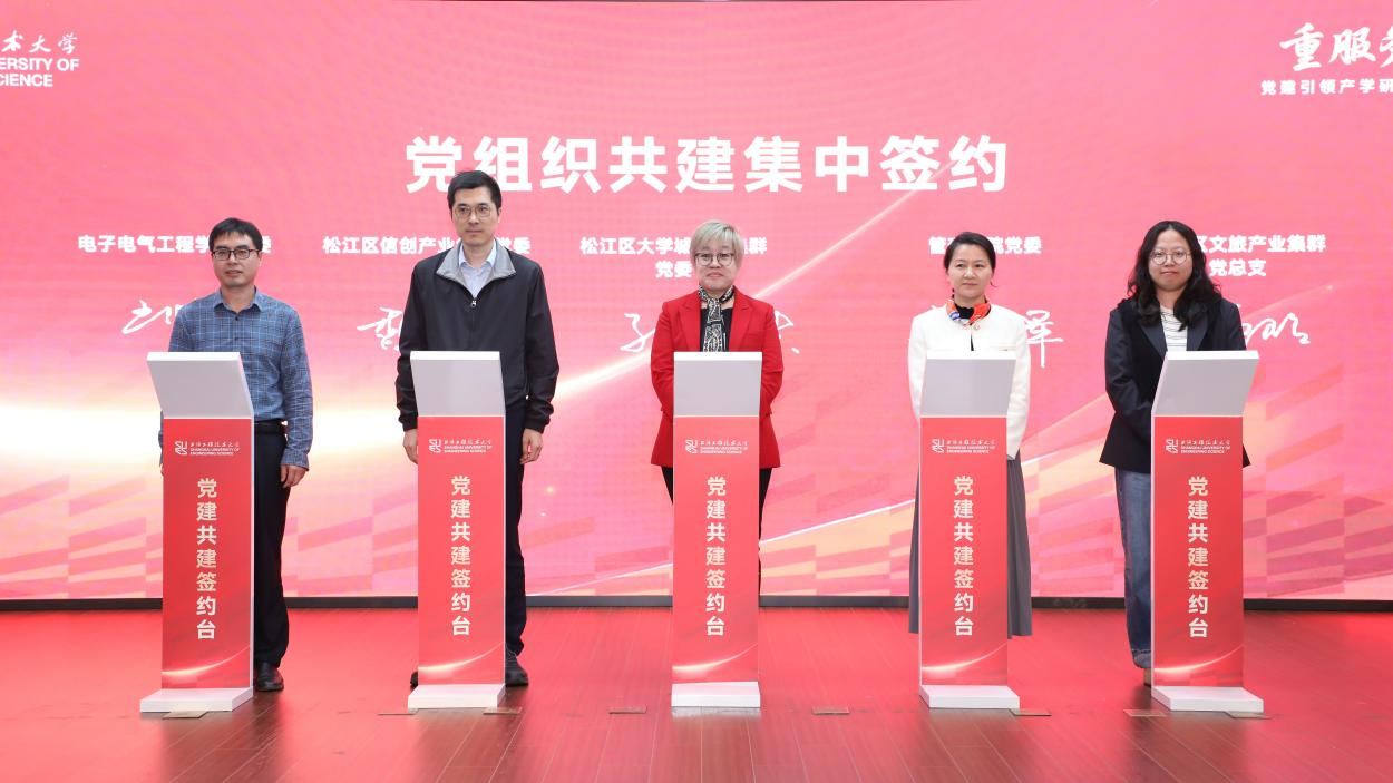 校地党建共建是激活区域创新生态、推动产业转型升级的重要途径,学校长期以来为松江产业高质量发展提供了坚实的人才储备与智力赋能。在活动现场,松江区委组织部副部长、区人才局局长吕颖群和上海工程技术大学党委教师工作部部长、人事处处长、人才办主任张宇清以及2025年学校派遣至松江区跟班学习的赋能专员代表,共同以拼图的形式绘制松江区产业集群蓝图,生动展现了校地双方 “目标同向、责任同担、资源共享、发展共赢” 的合作初心,也勾勒出松江产业集群与高校协同发展的美好愿景。