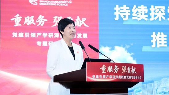 朱晓青向长期以来关心指导、支持帮助学校发展的领导、专家和企业家朋友表示衷心的感谢。她指出,学校党委高度重视党建工作与产学研融合发展,聚焦“重服务、强贡献”,精准对接上海“3+6”产业布局和松江各产业集群发展需求,以“党建共建、人才共育、创新共进、发展共谋”推动学校服务区域经济社会发展。站在新的历史条件下,学校党委以上海工业(产业)台柱子为使命,以“工程-管理-设计”“三旋翼”整合创新为策略,建设产业特色鲜明,世界一流的应用创新型大学。希望通过本次研讨会,在党建引领下进一步深化合作、凝聚合力,为推动区域经济社会高质量发展作出新的更大贡献!